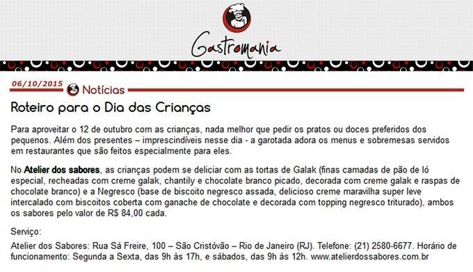 Entre em contato com o Atelier dos Sabores